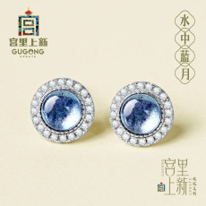宫里上新海蓝宝耳钉女纯银耳饰蓝色宝石耳环适合夏天妈妈生日礼物