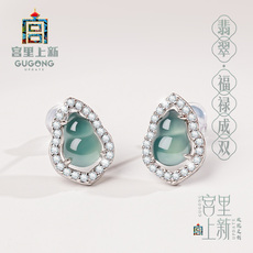 宫里上新翡翠耳钉女纯银耳饰精致新中式耳环高级感送妈妈生日礼物
