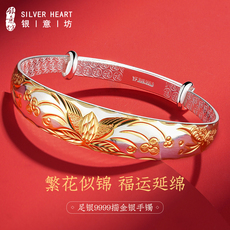 繁花似锦纯银手镯足银9999闭口银手环送女友生妈妈母亲节生日礼物