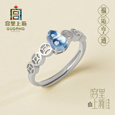 宫里上新海蓝宝戒指女葫芦蓝色宝石铜钱纯银招财转运妈妈生日礼物