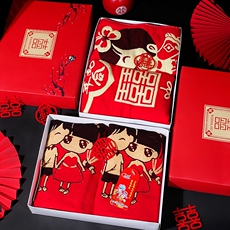 婚庆嫁妆老公老婆喜字结婚浴巾婚宴回礼喜庆卡通情侣龙凤礼盒毛巾
