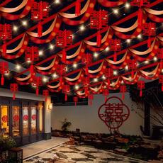 结婚农村院子装饰拉花彩带彩条客厅婚礼布置喜字灯笼挂饰婚庆用品