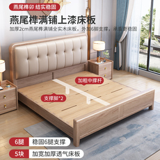 实木软包床1.8主卧大床猫爪皮松木双人大床现代简约高端大气婚床