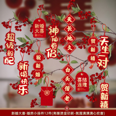 结婚喜字小挂件装饰喜字客厅卧室挂饰盆景吊树上绿植婚房布置用品
