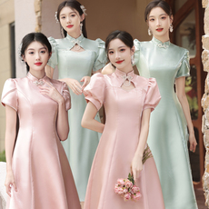 新中式伴娘服2026新款大码显瘦高级感缎面姐妹团礼服旗袍平时可穿