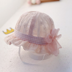 婴儿帽子春夏季可爱蕾丝蝴蝶结小月龄遮阳渔夫帽女宝宝护囟门胎帽