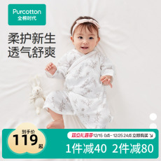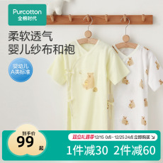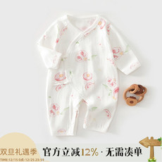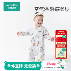 全棉时代新款春秋装婴儿纱布和袍满月宝宝新生幼儿衣服纯棉连体衣