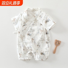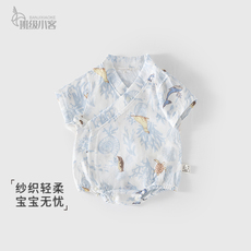 Oak Family新生婴儿衣服纱布和式爬服夏季短袖连体衣宝宝和尚服