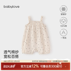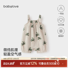 babylove婴儿吊带连体衣夏季纯棉纱布宝宝哈衣爬服可爱洋气夏装