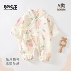 Aengbay婴儿睡衣纱布睡袍新生儿衣服薄款空调家居服宝宝连体衣秋