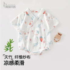 婴儿夏季薄款连体衣短袖新生儿竹纤维爬服和尚服宝宝夏装纱布斜襟