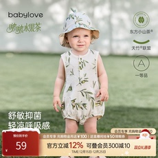 babylove婴儿包屁衣夏季薄款竹棉山茶纱布无袖连体衣透气哈衣爬服