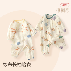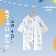 Aengbay[夏季纱布]新生儿衣服夏薄款宝宝睡衣哈衣爬服婴儿连体衣