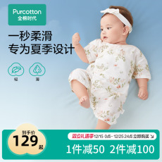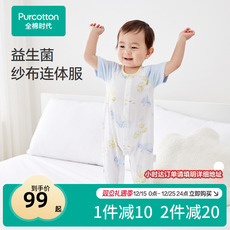 全棉时代纯棉新生儿夏季婴儿衣服纱布宝宝连体衣睡衣婴儿服薄款