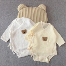 【门店同款】全棉时代2025秋婴儿弹力纱布系带连体服宝宝衣服哈衣