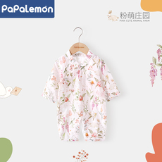 【糯糯纱布】婴儿连体衣夏季薄空调服女宝宝长袖纯棉哈衣粉萌庄园