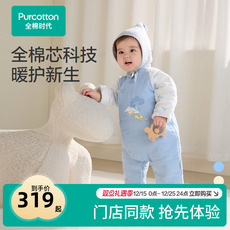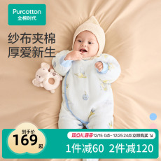 全棉时代新生儿衣服秋冬季婴儿纱布夹厚棉连体衣男女宝宝保暖爬服