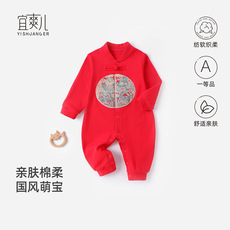 婴儿衣服秋冬新款夹棉连体衣红色纯棉冬季宝宝冬装喜庆贴身过年男