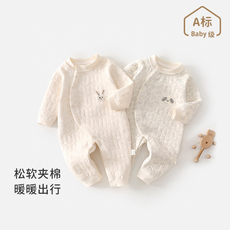婴儿夹棉冬装保暖居家纯棉a类贴身爬服哈衣新生儿宝宝连体衣秋冬