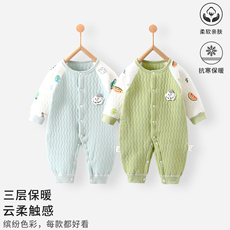 婴儿连体衣秋冬款三层保暖夹棉衣新生儿哈衣纯棉无骨宝宝加厚冬装