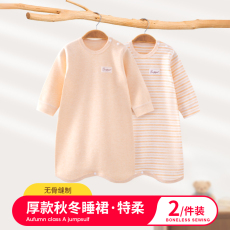 婴儿睡衣秋冬加厚宝宝睡袍春秋款长袖睡袋纯棉儿童连体衣保暖睡裙