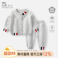 男宝宝春秋款毛衣套装男童韩版拼色圆领针织衫婴幼儿宽松百搭裤子