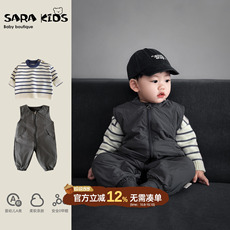 新生儿宝宝春秋款清仓韩版时尚爬服男童超萌百搭背带裤婴幼儿衣服