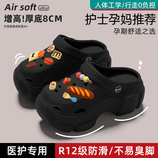 新款护士洞洞鞋女孕妇包头凉鞋夏防滑厚底果冻沙滩鞋外穿软底拖鞋