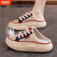 女鞋不累脚孕妇网面夏季拖鞋女包头外穿厚底透气码包头半拖鞋凉鞋
