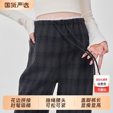 浪莎孕妇裤子秋冬加绒外穿阔腿裤春秋季人字纹休闲垂感直筒裤长裤