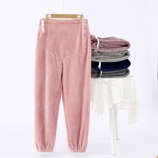 珊瑚绒孕妇睡裤冬季长裤春秋产后月子高腰托腹可调节家居裤可外穿