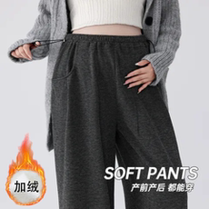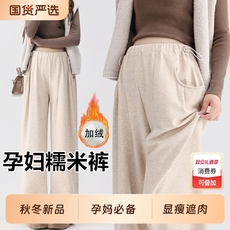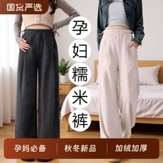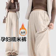 孕妇糯米阔腿裤春秋冬外穿打底裤加绒加厚托腹长裤子冬装休闲肚子