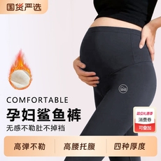 孕妇鲨鱼托腹裤显瘦休闲大码外穿打底裤加绒加厚春秋冬长裤子冬装