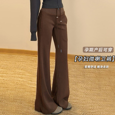 孕妇喇叭糯米裤子春秋款外穿2025新款孕期抽绳无托腹加绒微喇长裤