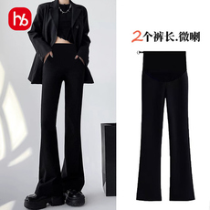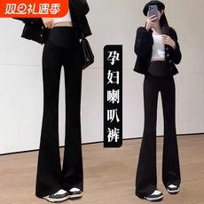 孕妇裤大码外穿春秋冬季新款时尚显瘦高腰打底黑色无托腹喇叭长裤