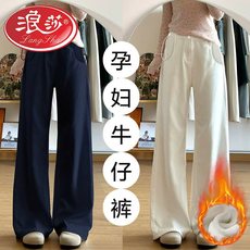 浪莎孕妇裤子春秋季外穿加绒2025新款阔腿裤软牛仔裤宽松百搭长裤