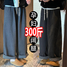 大码孕妇休闲阔腿裤春秋季外穿软糯垂感糯米裤托腹显瘦长裤200斤
