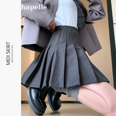 拉夏贝尔学院风灰色呢子百褶裙女秋季新款小个子高腰a字半身短裙M