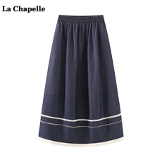 拉夏贝尔/La Chapelle学院风撞色半身裙女秋冬季新款中长款a字裙
