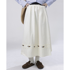艺野系 日系文艺复古绣花蕾丝花边高腰a字半身裙女森系杏色裙子