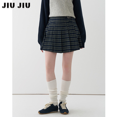 BANANA CICI2025年秋冬新款复古学院风羊毛呢A字高腰百褶半身裙
