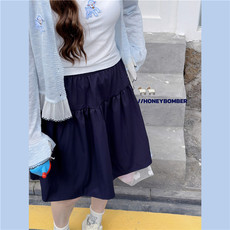 藏青色半身裙女夏季薄款2025新款高腰a字半裙日系学院风工装短裙