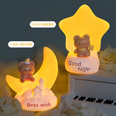 拍拍小熊小夜灯创意可爱搪胶安睡星星暖色床头小夜灯生日礼物