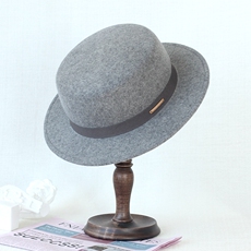 平顶帽子秋冬新款羊毛呢百搭礼帽男女复古光板平沿法式英伦风潮流