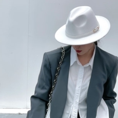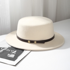 秋冬高级白色羊毛礼帽休闲简约光身百搭男女潮流帽子平沿大头围