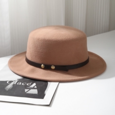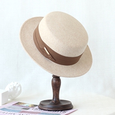 新款法式秋冬平顶羊毛呢礼帽子女平沿小沿英伦大头围百搭驼色黑色