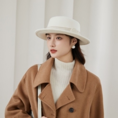 小香风秋冬新款平顶羊毛礼帽百搭逛街穿搭日常法式平沿男女潮流款