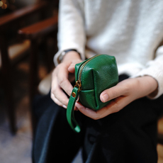 鹿小姐植鞣牛皮小众复古小巧拉链零钱包硬币耳机银行卡真皮收纳包