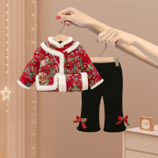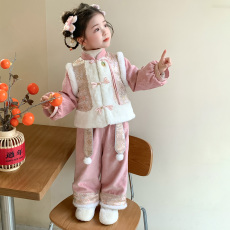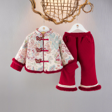 女童中国风加绒两件套冬季儿童棉服礼服女宝宝新年唐装拜年服套装