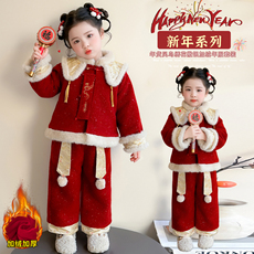 唐装女童棉衣套装冬季加厚新中式儿童汉服女孩喜庆宝宝新年拜年服